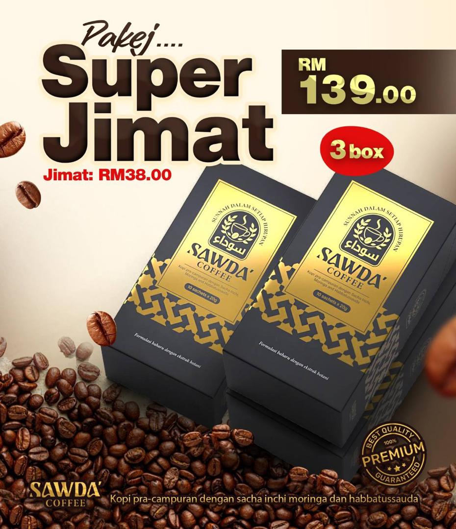 Kopi SAWDA adalah minuman kopi yang diperkaya dengan ekstrak moringa, sacha inchi dan habbatussauda yang terkenal dengan pelbagai manfaat kesihatan. Ia membantu meningkatkan tenaga dan menyokong sistem imun badan.