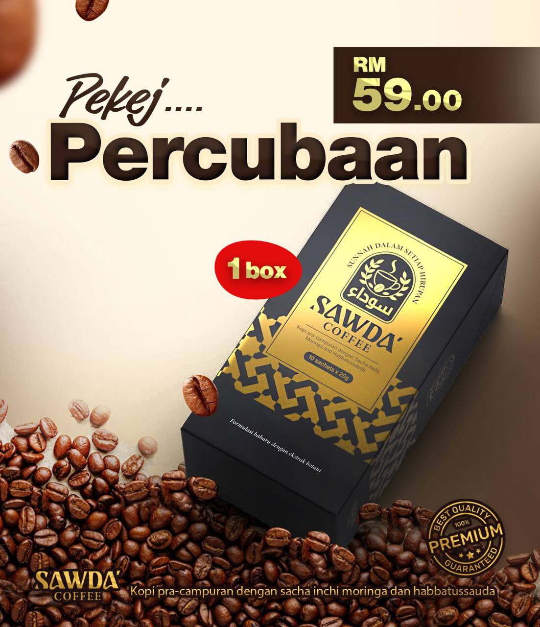 Sawda Coffee ini ialah gabungan kopi yang memberi tenaga, nutrien, dan keberkatan.